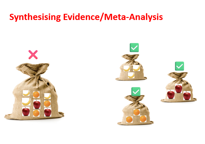 Such stratification would represent a significant improvement over current practice. Synthesising causal inference studies together would enable clearer statements about treatment effects. Similarly, synthesising associative or explanatory studies separately could provide valuable contextual or mechanistic insights without overstating causal claims. Importantly, this does not diminish the value of non-causal studies but rather ensures that each type of evidence is used appropriately.